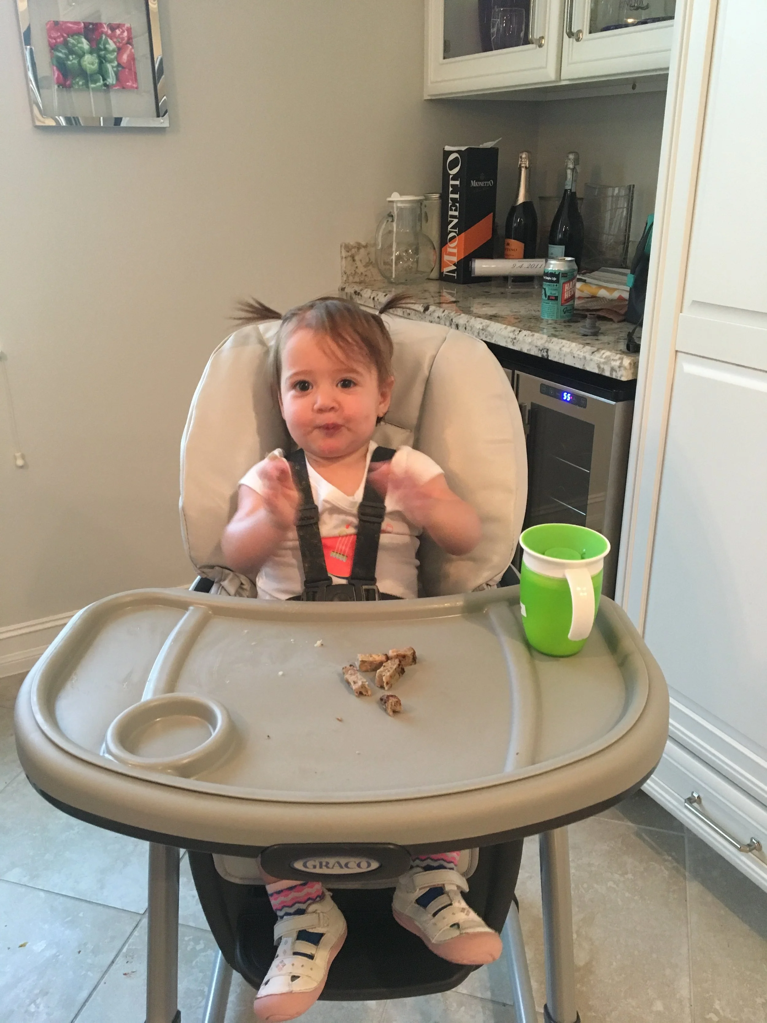 She's been throwing her food on the floor, and if we say "no" to anything she laughs like a little devil child.